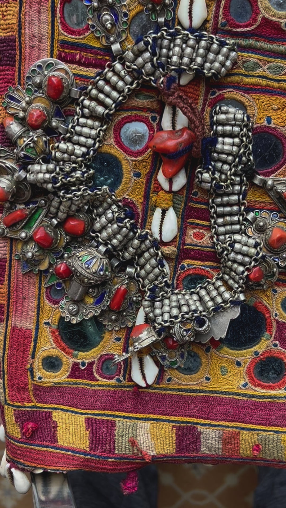 Antique stunning Kabyle silver and coral necklace called Azrar